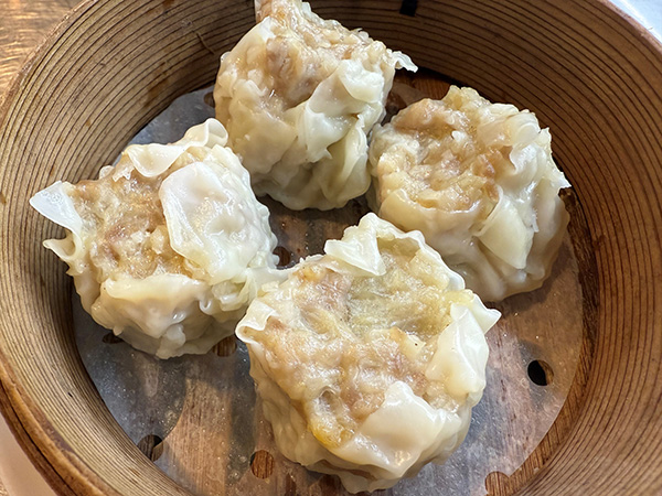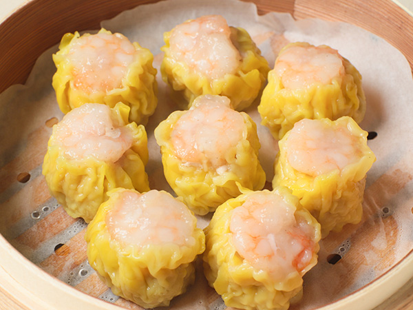 当店手作り焼売。プリプリの海老が大人気。