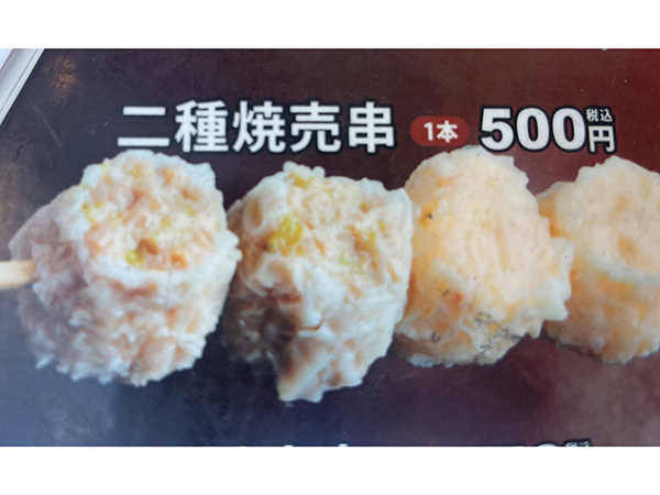 大焼売串(肉大焼売、海老大焼売、ホタテ大焼売各1個)