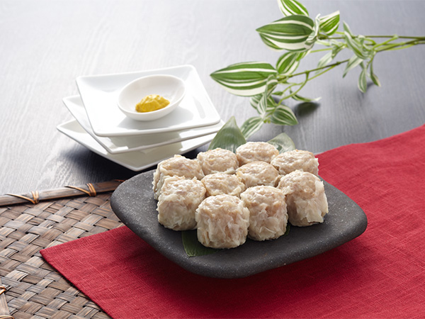 粗挽きの国産豚肉とプリプリな海老をふんだんに使い、エビを一尾乗せて広東風の海老焼売に仕上げました。プリプリ食感の手包み海老焼売をぜひご賞味ください。