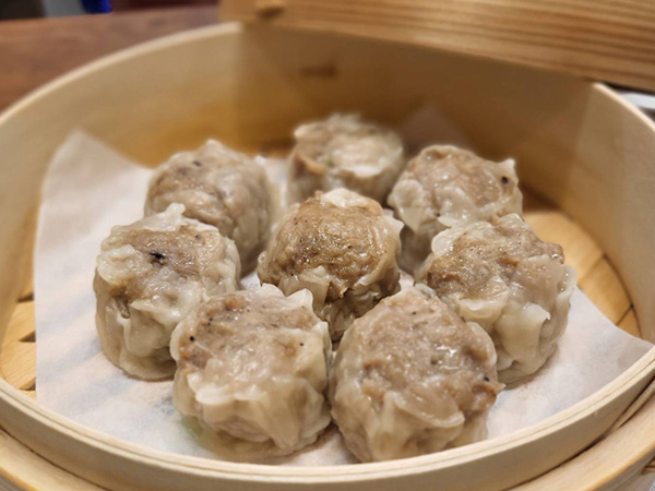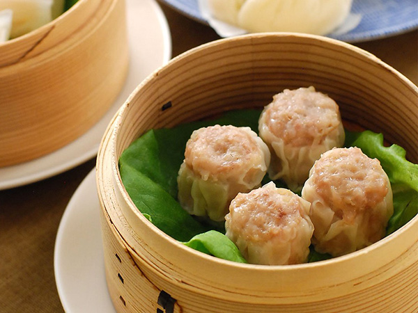 お店にて皮から手作り、国産豚挽肉を使用した肉汁たっぷりのショウロンポウです。ぜひご賞味ください。