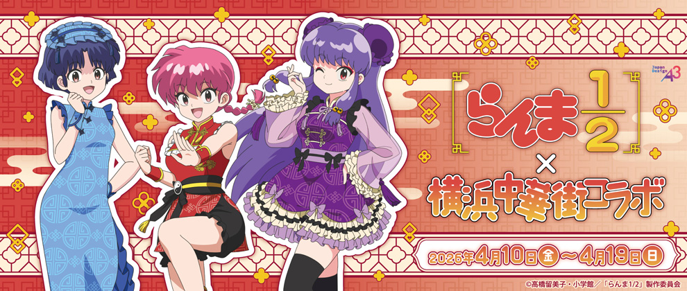 2026年4月10日(金)~4月19日(日)にて、TVアニメ『らんま1/2』と横浜中華街のコラボキャンペーンを開催いたします。参加店舗で対象の“小籠包”“しゅうまい”“お酒以外のドリンク”を注文していただきますと、特典イラストカード(全4種)がランダムでゲットできます。また、ChinaTown80Hallには「POP UP SHOP」が登場します。オリジナルチャイナロリータ衣装に身を包んだ描き下ろしイラストを使用した新商品が多数登場!今回の横浜中華街コラボに相応しいアイテムが目白押しです!