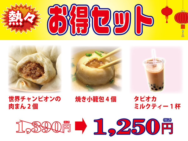 人気の五目肉まん+ドリンクセット
