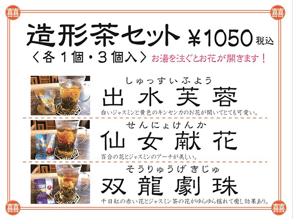 緑苑オススメのお茶【烏龍茶、ジャスミン茶、紅茶】5種類の中から1つお選びください。