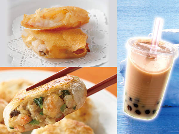台湾胡椒餅は、パリッとした皮とジューシーな肉餡が特徴の人気スナックです。台湾ミルクティーは、茶葉の香りとミルクのバランスが絶妙で、タピオカは小粒でモチモチ。世界的に人気のドリンク!