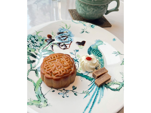 月餅は香ばしい皮とやさしい甘さのなめらなか餡、プレートにはチョコレートでお好きなメッセージを入れることも可、ドリンクもお選びいただけます♪
