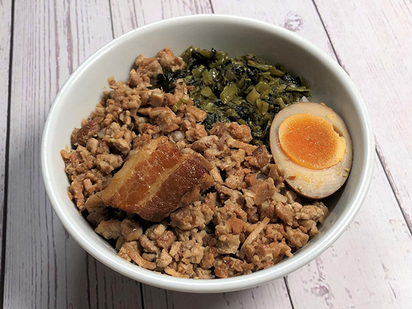 台湾屋台名物ルーロ―飯セット(小籠包・シューマイ・お新香・スープ・杏仁豆腐付)