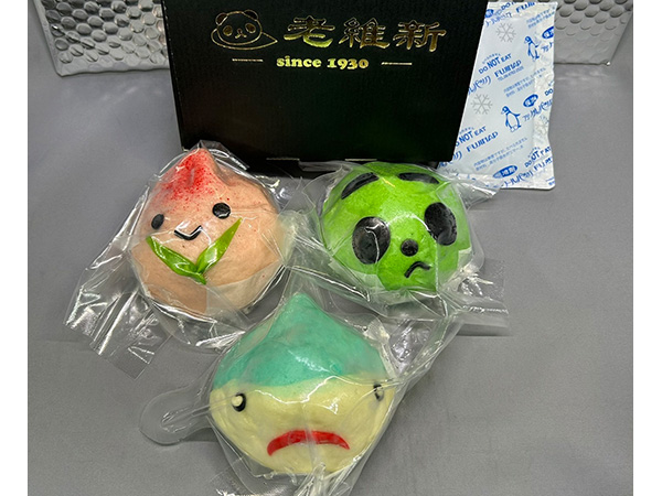 可愛くて美味しいと評判の老維新パンダまん。10種類のパンダまんの中でも超オススメの【桃まん】【野菜まん】【フカヒレまん】をセレクト。保冷剤と保冷バック付きなので安心して持ち帰れます。