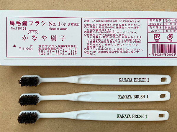 かなや刷子の一番人気、馬毛の歯ブラシ。歯茎を傷めず歯がツルツル!磨き心地の良さでリピーターさん多数!