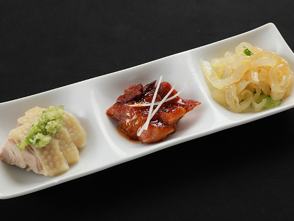 蒸し鶏、チャーシュー、クラゲの人気前菜を少しずつ召し上がれる人気メニュー