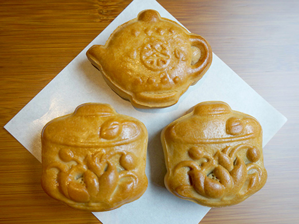 茶壷(急須)と蓋碗型が愛らしい当店オリジナル月餅。ハス餡月餅1個と小豆餡月餅2個を可愛らしい中華弁当ボックスに詰め合わせました。