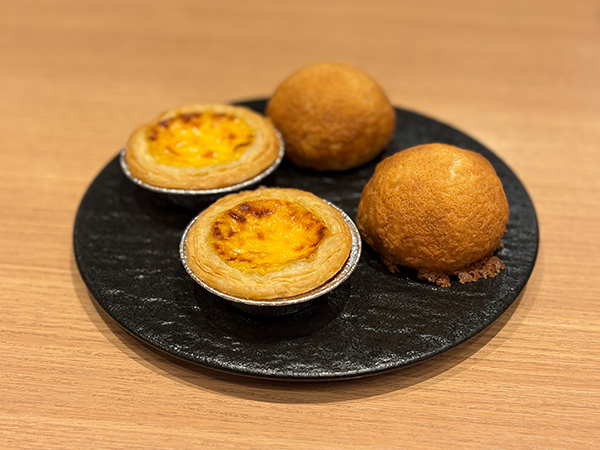 甘塩っぱさが癖になる叉焼メロンパンとなめらかで濃厚なエッグタルトを一度に味わえる贅沢なセット。