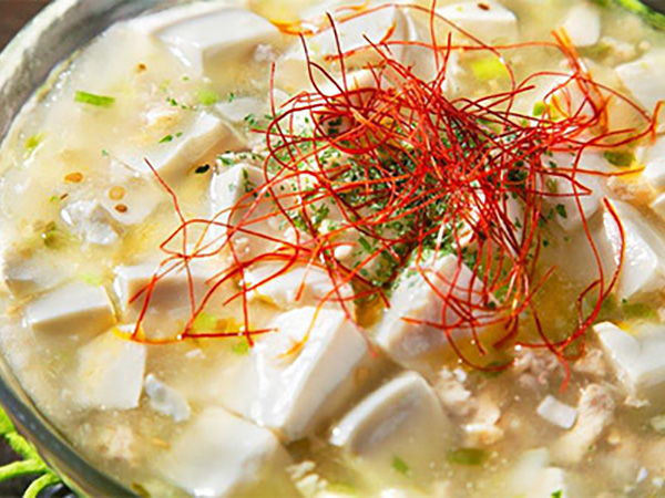 花椒油(ホアジャオユー)と青唐辛子が香る上品な味わいの元祖 白麻婆豆腐。