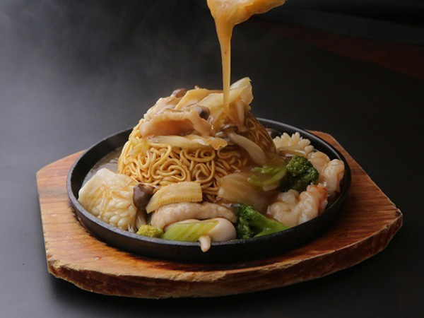 香ばしく揚げた自家製麺におこげと海鮮五目餡が絡む、旨味と食感が絶妙な自慢の一品!