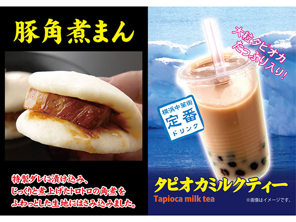 長時間煮込んで味が染み込んだトロトロ豚角煮をふわふわの生地で挟んだ絶品豚角煮まんとモチモチタピオカと甘いミルクティーがベストマッチのタピオカミルクティーの組み合わせは最高!