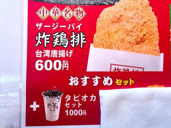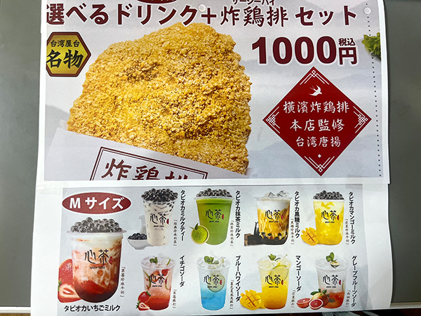 台湾唐揚げにタピオカドリンクが付いて1,000円のお得なセットです。