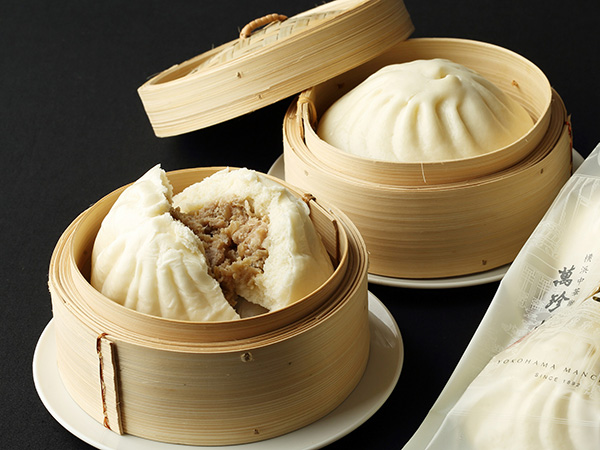 和豚もちぶたと玉ねぎで作ったシンプルな餡を、北海道産小麦粉のほんのり甘い生地で包んだ萬珍樓伝統の肉まんです。