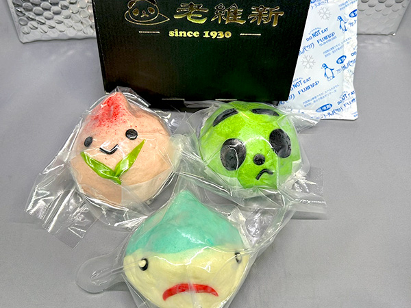 可愛くて美味しいと評判の老維新パンダまん。10種類のパンダまんの中でも超オススメの【桃まん】【野菜まん】【フカヒレまん】をセレクト。保冷剤と保冷バック付きなので安心して持ち帰れます。