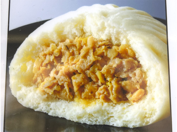 普通の肉まんの1/3の大きさ。おやつに最適。ジューシーで噛み応えのある醤油味。
