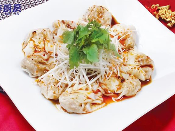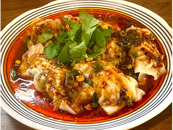 ぷりぷり海老と香ばしいピーナッツバターの風味が広がる自家製ワンタン。ピリ辛豆鼓入りの特製醤油ダレが絡み、つるんとした食感と深い旨みが楽しめる一皿です。