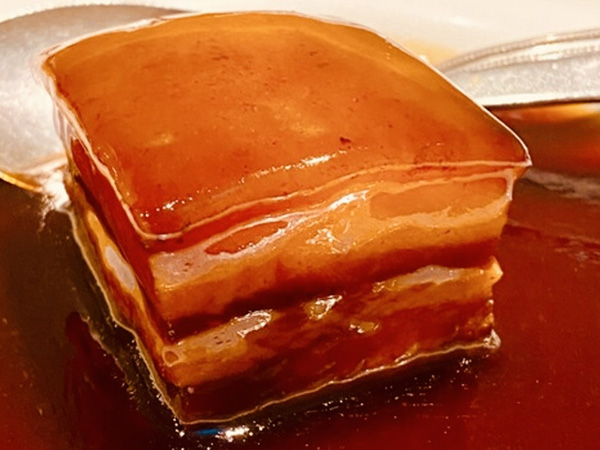「皇朝レストラン」オリジナルメニュー。じっくり煮込んだ豚角煮は皮がとろけます。世界チャンピオンおすすめの逸品です。食べ放題メニューで「とろける豚の角煮」をお楽しみください。