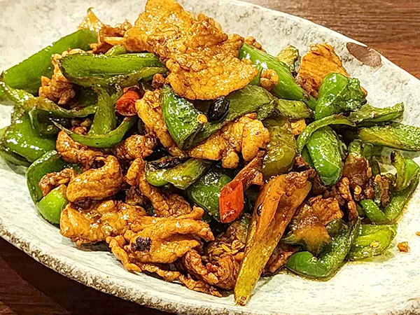 湖南省の代表的な家庭料理です。ピーマンと豚肉を高温で炒め、香ばしさと辛さが絶妙に調和した一品(辛さの調節可)。湖南人家ならではの味付けで、ご飯が進むこと間違いなし!本場湖南の「家庭の味」をぜひお楽しみください。