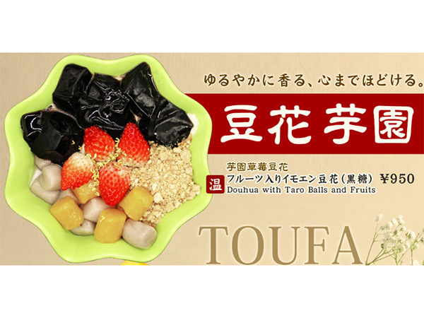台湾人気のフルーツ黒糖豆花は冬にぴったりのデザートです。甘酸っぱい苺の上に特徴のある甘い香りは金木犀(キンモクセイ)の花から発する香りです。口に入れるたびに贅沢な味わいを楽しめます。是非お試しください。