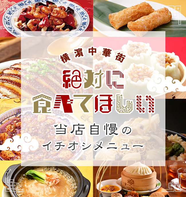 美味しい物がたくさん集まるグルメタウン「横浜中華街」。食べたい物が多すぎて目移りして困ってませんか?そんなお客様に各店舗が自信を持ってオススメする『‟絶対に食べてほしい”当店自慢のイチオシメニュー』をご紹介。ぜひ、お店選びの参考にしていただき、ゆっくり店内で横浜中華街の自慢の逸品を味わってください。